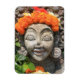 Détail de la statue sculptée balinaise avec décoration fleurie colorée à Ubud, Bali
