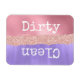 Lave-vaisselle filaire coloré aimant fait des graphiques d'une feuille rose et de feuille violette regarde avec une fausse parties scintillant rose entre eux. Le gros texte blanc dit "Dirty and Clean".