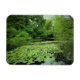 A beautiful natural area at the Molalla River State Park à Canby, dans l'Oregon. Lush green trees & bushes in the Spring, with lily pads sprind on the dark reflepond.
