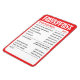 Information d'urgence Liste d'aimants Gardez toutes vos coordonnées d'urgence sur votre réfrigérateur — parfait pour les jeunes enfants, baby-sitters, nounous et invités! Assurez-vous que vous et votre famille avez toujours un accès rapide et facile aux numéros de téléphone les plus importants, y compris votre propre numéro de téléphone cellulaire et votre adresse personnelle. Un espace supplémentaire en bas vous permet de laisser des notes avec un marqueur d'effacement sec. Vous pouvez ainsi ajouter des instructions ou des rappels au besoin. Vous pouvez également customiser complètement les champs pour inclure les informations que vous voulez afficher — il suffit de cliquer sur le bouton "Customiser ceci" pour ajouter, supprimer ou modifier des champs.