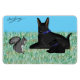 Mon art signature - M. Squirrel en conversation intense avec un berger allemand noir et son petit sur cet aimant flexible.