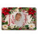 Celebrate the joy of the season with this beautifully designed Folded photo magnet, perfect for sharing your family's newest blessing. The front features a festive floral border of red poinsettias, white blossoms, pine sprigs, and berries, framing a soft cream-colored space where a photo of your baby brings the card to life. The words 'Thankful for our gift this Season' appear below the image, expressing heartfelt gratitude.