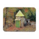 Cet aimant flexible présente une maison de elfes située dans les bois de la ferme d'arbres de Noël Winterberry à Killingworth, Connecticut.