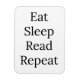 L'aimant "Mange, Dors, Lis, Répète" est parfait pour cette personne dans votre vie qui aime lire. Lettres noires avec arrière - plan blanc.