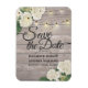 Mariage Enregistrer la Date Magnet Modèles - Elégant blanc belle aquarelle Hydrangea Fleurs et lumières à cordes sur Rustic Wood Arrière - plan. Un Design Parfait Pour Votre Grand Jour ! Tous Les Style De Texte, Couleurs, Tailles Peuvent Être Modifiés En Fonction De Vos Besoins.