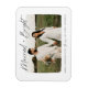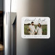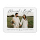Célébrez votre premier Noël en tant que couple marié avec notre aimant photo de vacances Mariés et lumineux ! L'aimant présente "Mariés et lumineux" dans un script écrit à la main en noir. Votre photo de mariage horizontale est affichée avec une bordure blanche à bord déchiqueté. Personnalisez l'aimant en ajoutant un message personnalisé avec vos noms indiqués ci-dessous.