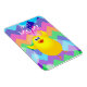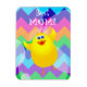 Joyeux poussin sur arrière - plan coloré, dessin animé