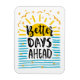 Encouragez quelqu'un qui traverse une maladie avec ce design de typographie à la main gai avec le message en noir, des lettres de script de brosse, "Meilleurs Jours en avant" entouré par le soleil aquarelle avec des rayons et des étoiles et des ondes océaniques bleu clair.