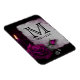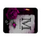 Un aimant monogramme flex personnalisé avec un look gothique. Un vieux papier parchemin gris avec des touches de rouge violet autour des bords. Un rose magenta en pleine floraison, un rosebud, une bougie et un casier argenté sur un arrière - plan bordeaux foncé crée un design gothique magnifique, sombre et mystérieux. Personnalisez avec votre lettre monogramme et votre nom.