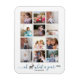 Oh cerf ce qu'un an dans l'examen douze photo collage bleu aimant flexible. Un aimant de Noël moderne avec un collage photo de douze photos avec cadre gris un pour chaque mois et le message : "Oh cerf, quelle année" en bleu avec un cerf gris au lieu du mot cerf. Toutes les photos sauf une sont de Photographie © Storytree Studios, Stanford, CA