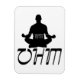 Une silhouette d'un homme en position lotus, faisant des boucles de fil comme celles utilisées dans les atomiseurs réparables. Sous lui se trouve le mot Ohm, rappelant les unités de résistance électrique (toujours importantes pour les vapeurs) et la syllabe sacrée de l'hindouisme et du bouddhisme.