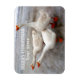 Photo de Zolotareva.Oie blanche sur la neige blanche.Oies sont drôles.Vous pouvez ajouter nom ou texte personnalisé. Personnalisez ce modèle.