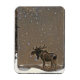 OEuvre d'art vintage John Bauer représentant une orignale debout dans la neige entre deux arbres.
