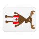 Photo prise à la main d'un orignal portant un short de boxer drapeau canadien. Quel aimant amusant pour garder tous ces papiers importants à portée de main sur votre réfrigérateur. Pourquoi ne pas acheter ce souvenir unique pour vous souvenir de votre voyage au Canada.