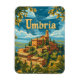 Une description charmante et nostalgique de l'Ombrie, en Italie, réputée pour ses collines ondoyantes, ses villes médiévales et ses paysages pittoresques. Le design saisit les vignobles luxuriants de la région, les oliveraies et les villes historiques comme Assise et Pérouse, encadrées par la douce beauté de la campagne ombrienne. Rendu dans un style vintage, l'oeuvre évoque le charme serein et intemporel de l'Ombrie, invitant à découvrir sa richesse culturelle et son attrait pittoresque