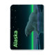 Un moment de paix dans la longue nuit arctique. Un Ours Polaire repose au bord d'une zone ouverte dans la glace de la meule.Les aurores nordiques brillent au loin; les étoiles brillantes scintillent au-dessus. Le texte "Alaska" apparaît en vert et blanc brillant. Les ours polaires sont en danger. Combien de temps encore des scènes comme celle-ci pourront-elles se produire ? S'il vous plaît aidez à sauver les ours polaires de l'extinction.