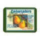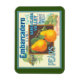 Art étiquette vintage pour poires jaunes avec un beau paysage pittoresque de mouettes au-dessus de l'eau. Art antique restauré avec des couleurs plus vives et plus vives.