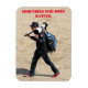 Un aimant amusant pour votre réfrigérateur - Parfois la taille importe. Il a une photo d'un photographe portant un énorme objectif sur ses épaules. La photo a été prise à St Malo, France, lors d'un concours de kiteboard.