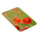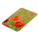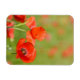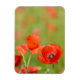 Aimant photo vertical avec des fleurs de pavot rouge vibrantes dans un champ vert plein de pavots. Il a une forte émotion de bonheur, printemps et été.