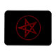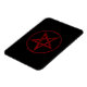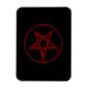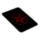 Pentagramme rouge, inversé, texturé en cercle, sur arrière - plan noir. Symbole occulte 666