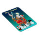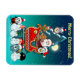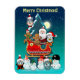 Ce mignon aimant dispose d'un traîneau devant un sapin de Noël avec le Père Noël assis à l'intérieur, entouré de deux pingouins, quelques bonbons de neige, quelques biscuits de pain d'épice, une chouette et un chiot.