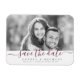 Script moderne "enregistrer la date" en couleur bordeaux, avec photo de couple, simple et élégant. Super photo enregistrer la date aimant pour mariage moderne et d'autres événements. Sélectionnez "Cliquez pour customiser plus loin" dans la section "Personnalisez ce modèle" pour modifier la couleur du script en fonction de votre photo, et ajuster la position de votre photo.