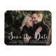 Photographie fantasque et élégant enregistrer l'aimant de date avec script de calligraphie moderne blanc. Des articles similaires et d'autres couleurs sont disponibles. Disponible dans d'autres produits.
