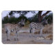 Double Take Zebras Nature Les photos et les cadeaux présentent une belle photographie de deux zèbres qui regardent tous deux le spectateur pris lors d'une pause snack par Kurt Keller avec un appareil photo de 35 mm pendant un safari africain au Botswana, en Afrique du Sud et au Zimbabwe. Chaque zèbre est unique porte son propre motif de rayures malgré la double prise. Quiconque aime les animaux africains, la faune et la flore, et tous les amateurs de zèbres apprécieront cette belle photo d'un deux zèbres debout dans la savane.