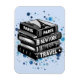 Une collection de livres sur les voyages dans différentes villes. Style pop art noir et blanc des livres. Un arrière - plan de bleu doux avec différentes nuances de points d'aquarelle bleu. Un aimant de voyage amusant à ajouter à votre vie.