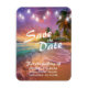 Magnet moderne de mariage 'save the date' alliant élégance et fonctionnalité, ce qui en fait un excellent choix pour planifier votre mariage tropical sur la plage. Éléments de thème de plage au coucher du soleil tropical, avec des guirlandes lumineuses qui donnent le ton à une célébration vraiment romantique et inoubliable. Cliquez sur personnaliser pour une édition ultérieure.