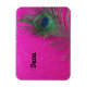 Fantastique photo d'une plume de paon parfaite avec un arrière - plan rose étincelant foncé. Un cadeau parfait pour la fille dans votre vie qui aime le rose