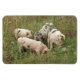Cet aimant impressionnant présente une belle photo d'un groupe de cochons mignons dans un champ. Certains cochons se balancent sur la terre tandis que d'autres regardent.