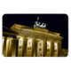 La porte de Brandebourg la nuit, Berlin, Allemagne. La Porte de Brandebourg (allemand : Brandenburger Tor) est une ancienne porte de ville et l'un des principaux symboles de Berlin et d'Allemagne. Il est situé à l'ouest du centre-ville, à la jonction de Unter den Linden et Ebertstraße, à l'ouest de la Pariser Platz. Il s'agit de la seule porte d'entrée d'une série à travers laquelle Berlin fut une fois entrée. Un pâté de maisons au nord abrite le bâtiment du Reichstag. La porte est l'entrée monumentale d'Unter den Linden, le célèbre boulevard des tilleuls qui menait directement au palais de ville des monarques prussiens. Il a été commandé par le roi Frédéric William II de Prusse comme un signe de paix et construit par Carl Gotthard Langhans de 1788 à 1791. Après avoir subi des dommages considérables pendant la Seconde Guerre mondiale, la Porte de Brandebourg a été entièrement restaurée de 2000 à 2002 par la Stiftung Denkmalschutz Berlin (Fondation pour la conservation des monuments de Berlin). Aujourd'hui, il est considéré comme l'un des monuments les plus célèbres d'Europe.