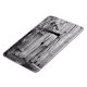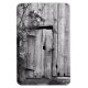 L'aimant "Porte de grange avec arbre" est une image rustique du bois usé et patiné d'une porte de grange serrée avec un arbre poussant contre le mur extérieur des planches. Fait en noir et blanc.