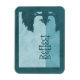 Dessin texturé vert-bleu représentant la silhouette d'un homme assis sous un arbre près d'un étang qui contemple. Le mot "Reflet" repose sur la surface du lac, le texte et les ombres reflétés dans l'eau parfaitement calme.