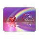 Aimant avec mon oeuvre originale d'un coeur réfléchi sur les eaux brillantes avec un arc-en-ciel dans un ciel violet. Le texte dit "Heureuse Sainte-Valentin".