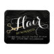 Salon des cheveux / Coiffeur / Coiffeur / Salon de beauté Modèles d'aimant personnalisés - Ciseaux d'or Faux modernes sur Elégant Arrière - plan Motif de cheveux noir et blanc.