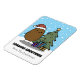 A cute Christmas magnet featuring a cartoon potato in a whimsical Christmas scene. The potato is in front of a Christmas tree that has lights attached and a star on top. The background is a winter scene with snow. On the front are templates to add your name and message to personalize.