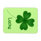 Un mignon aimant vert avec un trèfle à quatre feuilles sur lui.