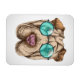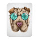 Ce dessin présente le portrait d'un chien de Sharpei portant des lunettes turquoises teintées.