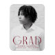 Aimant moderne de graduation avec la photo verticale du diplômé avec "Grad" affichée en lettres de style art déco bordeaux. Personnalisez les magnets de la photo de graduation en ajoutant le nom du diplômé, le nom de l'école et l'année de fin d'études.