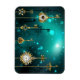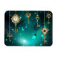 Or, clés antiques avec engrenages et cadrans accrochés sur chaînes dorées sur arrière - plan vert lumineux.
