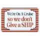 Félicitations pour vos vacances de voyage à venir sur un bateau de croisière. Ajoutez un peu de plaisir et de rire à vos voyages en faisant savoir aux gens que "Nous sommes en croisière pour ne pas donner de bateau". Rouge, blanc et bleu avec citation humour de croisière style typographie.