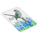 Un aimant décoré d'un oiseau moqueur gris sur un poteau avec des fleurs sauvages bleus fleuris dessinés à l'encre et peints à l'aquarelle. Inspiré par l'oiseau de l'état et la fleur de l'état du Texas.