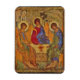 L'oeuvre/icône Antique Andrei Rublev représentant le Père, le Fils et le Saint-Esprit assis à une table. Les images semblent avoir des ailes d'anges.