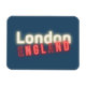 Design typographique moderne avec "Londres Angleterre" en rouge et blanc néon texte sur arrière - plan bleu foncé