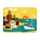 Ce design présente une ville portuaire mignonne dans un design abstrait moderne.