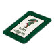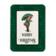 Aimant festif de vacances, pièce découpée des anciennes cartes postales de Noël d'une petite fille mignonne habillée dans son meilleur de vacances avec parapluie assorti. Le texte de salutation "Joyeux Noël" est personnalisable. Arlequin vintage vert foncé à motif arrière - plan
