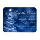 Elégant mariage "Winter Wonderland" "Save The Date" avec Arbre de Noël scintillant Argent + Motif Bleu.