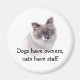 Magnat blanc avec visage de chat et disant "Chiens ont des propriétaires, chats ont du personnel